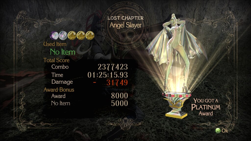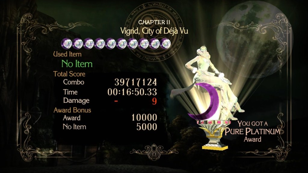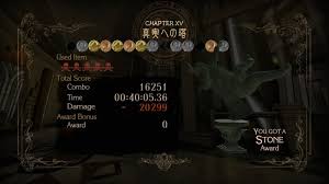 The game is in a book format with multiple chapters, with each consisting of several versus. Depending on how well the player performs a level, the player will receive one of the following medals at the end of the versus, being, Stone, Bronze, Silver, Gold, Platinum, and Pure Platinum. At the end of the chapter, there’s a final score and award that is given depending on the medal that was achieved through that level. score may get deducted depending on how many items that were used and how many amount of deaths.